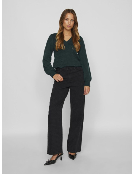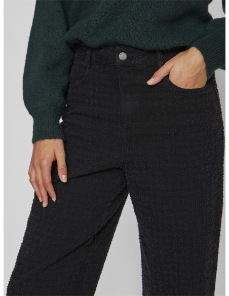 ქალის ჯინსი VILA - VIANY HW WIDE DETAIL JEANS BLACK ZOA