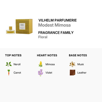Housed in a beautifully designed 3.4 oz bottle, Modest Mimosa is a standout creation from the renowned design house Vilhelm Parfumerie. Its unisex appeal makes it a perfect signature scent for anyone who values grace without excess. Whether you're dressing up for an evening out or adding a touch of elegance to your daily routine, this perfume offers a versatile and memorable aroma.