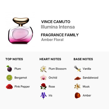 Belonging to the Amber Floral fragrance family, Illumina Intensa by Vince Camuto is a testament to the art of fine perfume crafting. Its intricate composition is a celebration of femininity, designed to illuminate and intensify the natural beauty of the woman who wears it. Whether it's a day at the office, a night out with friends, or a special occasion, Illumina Intensa is the perfect accessory to complement your unique style and personality.