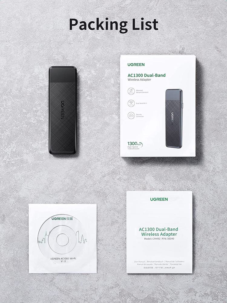 Wi-Fi ადაპტერი UGREEN CM492 (50340) AC1300 Wireless Network Adapter USB3.0 1300Mbps Black