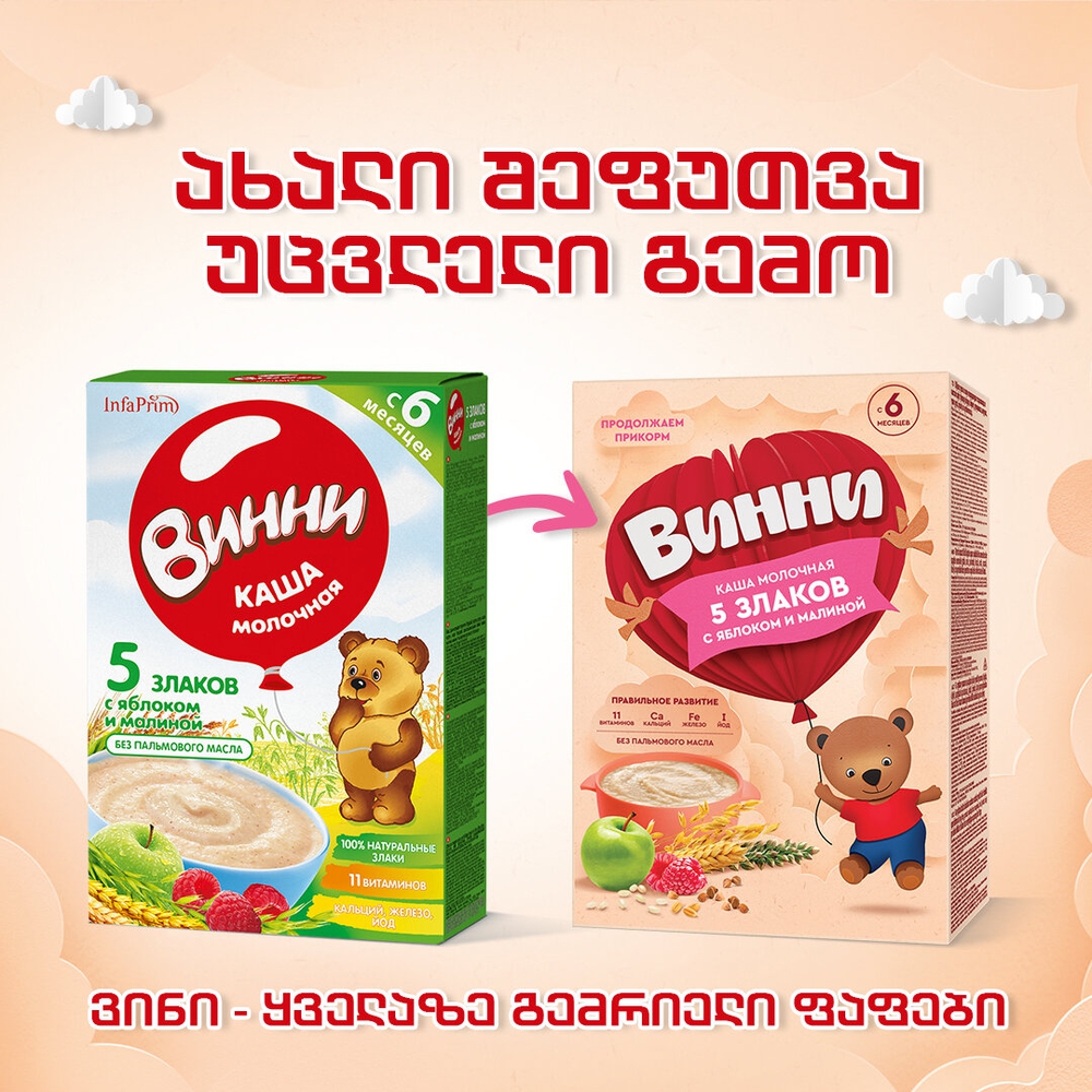 Winnie რძიანი ფაფა 3 მარცვალი ხილით