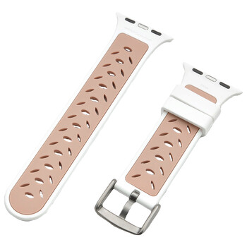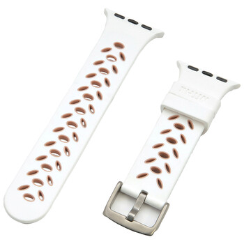 White silicone strap. Band width: 20 mm. Buckle clasp. Item Variations: WI/T-AS3-008-43-BX-01. WITHit Apple Compatible White Watch Band.