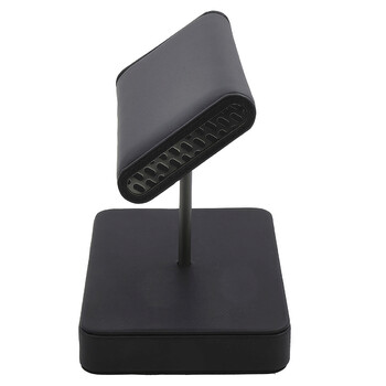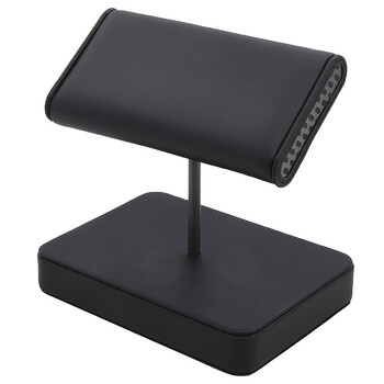 Wolf Axis Double Static Watch Stand - Powder Coat. The Axis Double Watch Stand features a wide, soft, padded top cushion and a secure base, connected with a reinforced steel pole - keeping your watches safe, scratch free, and accessible. Featuring powder-coated laser cut perforated steel melded with clean, sleek lines, AXIS from WOLF drives a modern, bold look for safekeeping your timepieces. Handcrafted from vegan leather, the Axis Double Watch Stand gives you space for your two favourite watches.