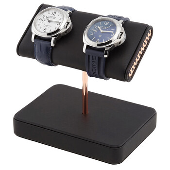 Powder-coated and copper plated laser cut perforated steel melded with clean, sleek lines. AXIS drives a modern, bold look for safekeeping your timepieces. Handcrafted from vegan leather, the Axis Double Watch Stand gives you space for your two favourite watches. The Axis Double Watch Stand features a wide soft padded top cushion and secure base, connected with a reinforced steel pole - keeping your watches safe, scratch free and accessible. Your watches are more than a timepiece, they are an extension of your personality, a source of pride and a measure of success. Proudly display your watches in your home, on your bedside table or office desk with the Axis Double Watch Stand. Storage: 2 watches Wide soft padded top cushion, secure base, and a reinforced steel pole designed to hold heavy weight watches Material Vegan leather .