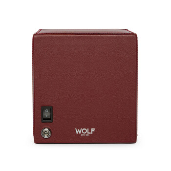 Eye-catching and fashionable, Cub winders are the perfect match for any watch aficionado's growing collection. Just stack together to suit your needs. Includes a bordeaux pebble finish, glass cover, bordeaux grosgrain faceplate, chrome finished hardware and a single winding module.