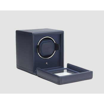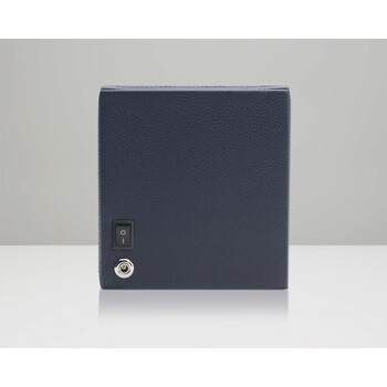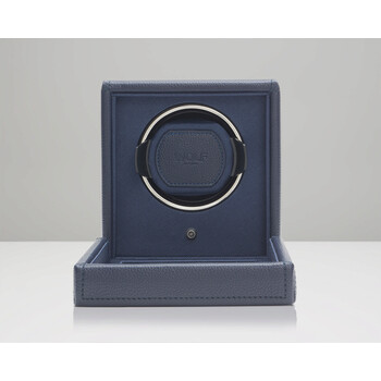 A meticulously engineered watch winder with a sharp design, the Cub includes a navy pebble finish, glass cover, navy grosgrain faceplate, chrome finished hardware and a single winding module. Dimensions: 5.25'W X 6'D X 5.75'H Features: Rotation: 10 second start delay, 900 TPD (Turns Per Day) bi-directionally, patented rotation programs - Intermittent rotation with pause and sleep phases pre-programmed.