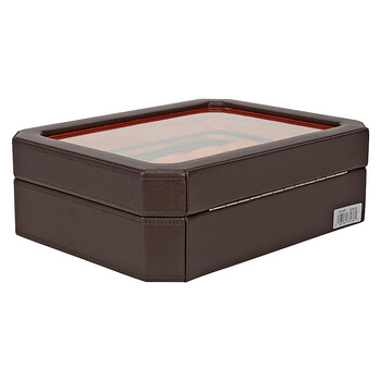 A mid-century inspired watch box, the Windsor combines sharp design with smooth edges. Includes chrome finished hardware, locking glass cover , black pebble faux leather, silver textured silk lining and 10 piece watch storage. Storage: 10 piece watch storage (cuff will accommodate up to 52mm case). Other: Locking glass cover. Dimensions: 12.5" x 9.75" x 4".