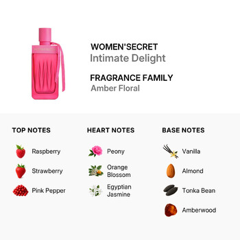 Women'Secret Intimate Delight is a fragrance that speaks to the heart—chic, modern, and undeniably feminine. Treat yourself or gift it to someone special. Please note: This item ships only within the Contiguous United States and Canada. Barcode: 8436611101638.