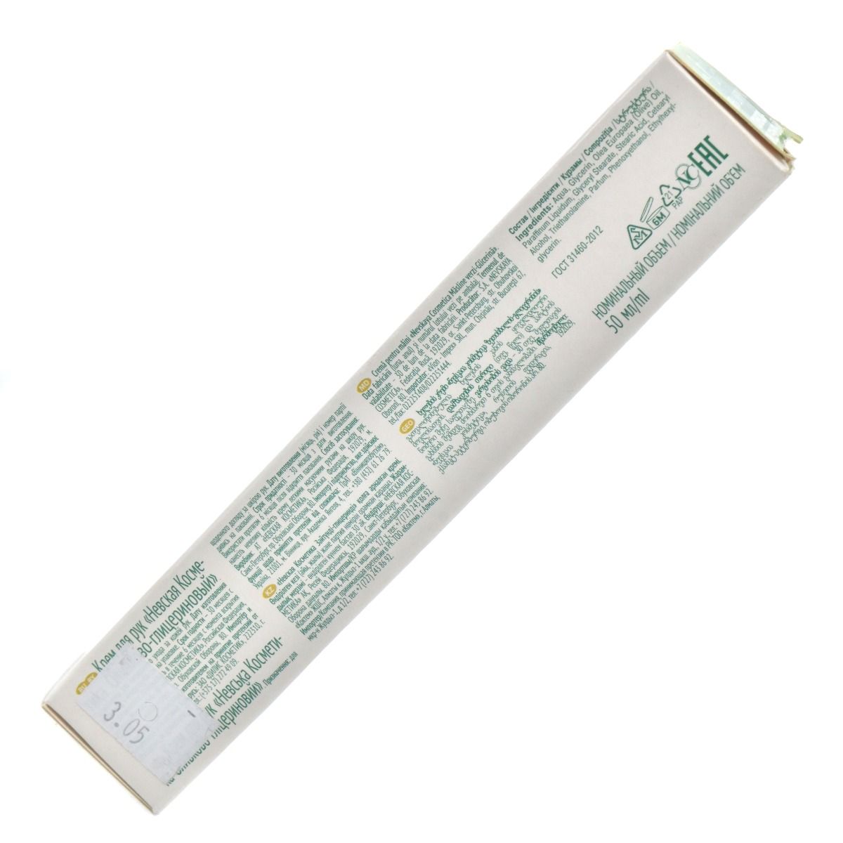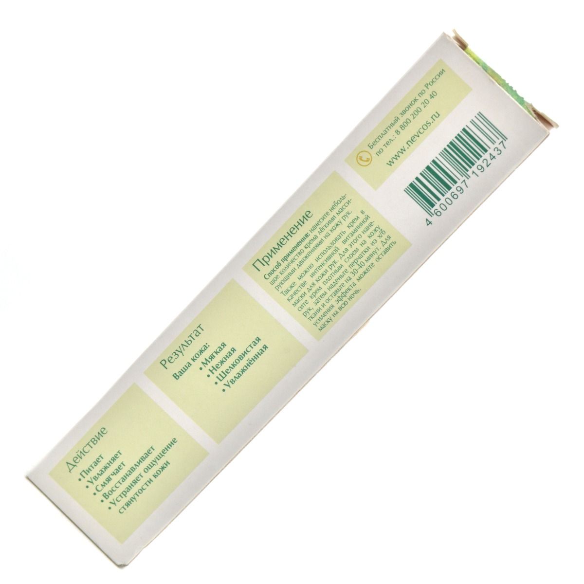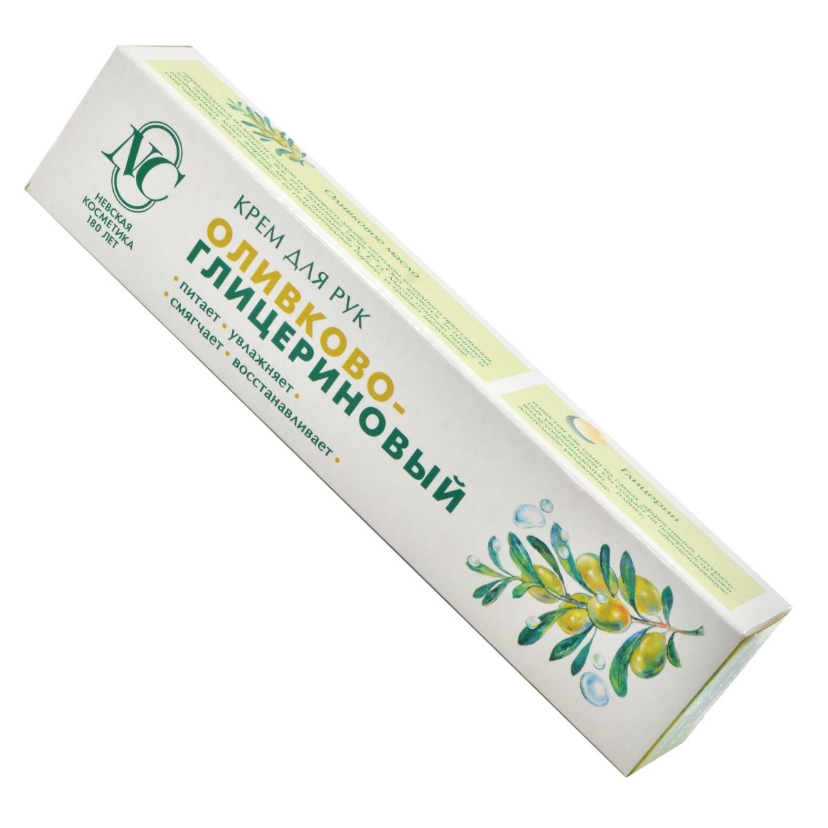 NC (ნევსკაია კოსმეტიკა) ხელის კრემი ზეთისხილის ექსტრაქტით და გლიცერინით არბილებს და კვებავს ხელის კანს. მისი ბუნებრივი ინგრედიენტები ქმნიან დამცავ ფენას კანის ზედაპირზე, რაც ხელს უწყობს კანის ტენიანობის აღდგენას და შენარჩუენბას. კრემი ადვილად შეიწოვება და არ ტოვებს წებოვნებას.