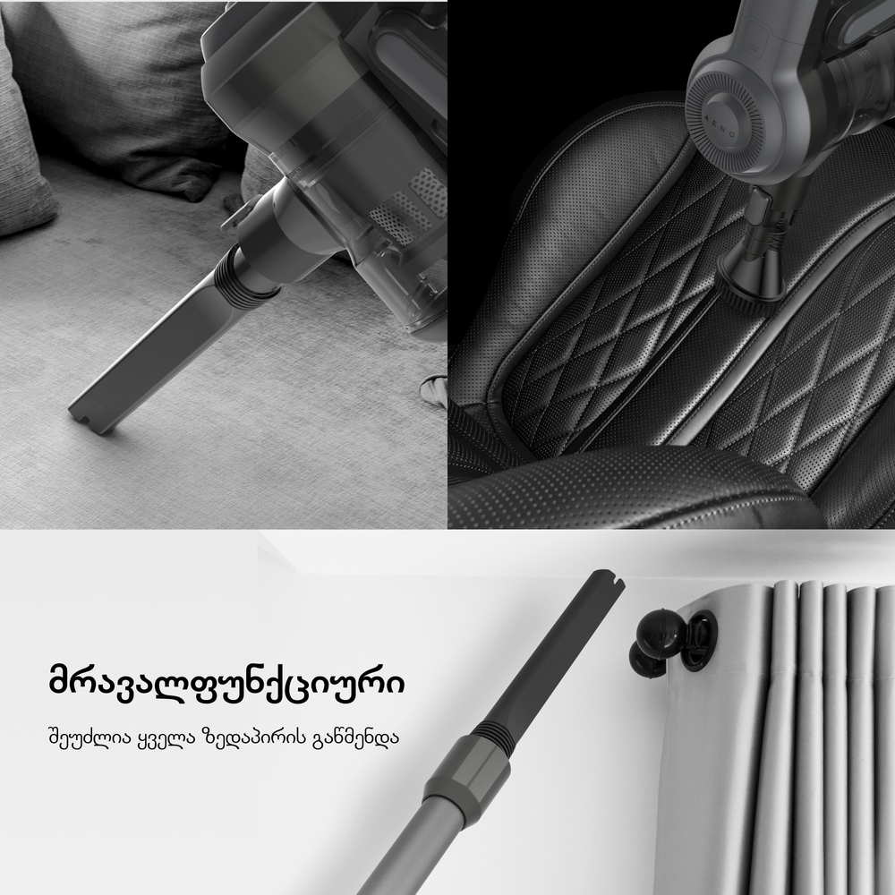 AENO SC1 უსადენო, მულქიფუნქციური ხელის მტვერსასრუტი, ძლიერი 15000 Pa შესრუტვით და MIF ფილტრით ისრუტავს მტვრის უმცირეს ნაწილაკებისაც კი, არ იხვევს ცხოველის ბეწვსა და თმებს. მტვერსასრუტს აქვს მოტორიზებული ტურბო ჯაგრისი, რომელსაც აქვს LED განათება, მტვრის ნაწილაკების მარტივად შესამჩნევად.