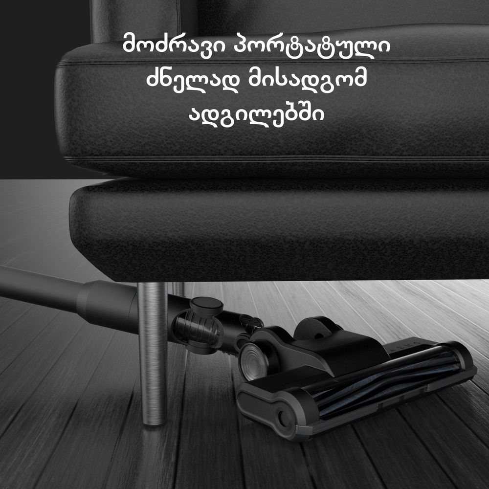 პორტატული მტვერსასრუტის გამოყენება შეგიძლიათ ნებისმიერი ტიპის მყარ იატაკზე და ხალიჩებზე. აქვს 500 მლ -იანი მტვრის კონტეინერი, რომლის დაცლა მარტივია და გარეცხვაც არის შესაძლებელი. 120W სიმძლავრის მტვერსასრუტი, 2200 mAh ელემენტით, სტანდარტული რეჟიმით მუშაობს 45 წუთი, ხოლო ტურბო რეჟიმით 25 წუთი, დასამუხტად კი სჭირდება 4 საათი.