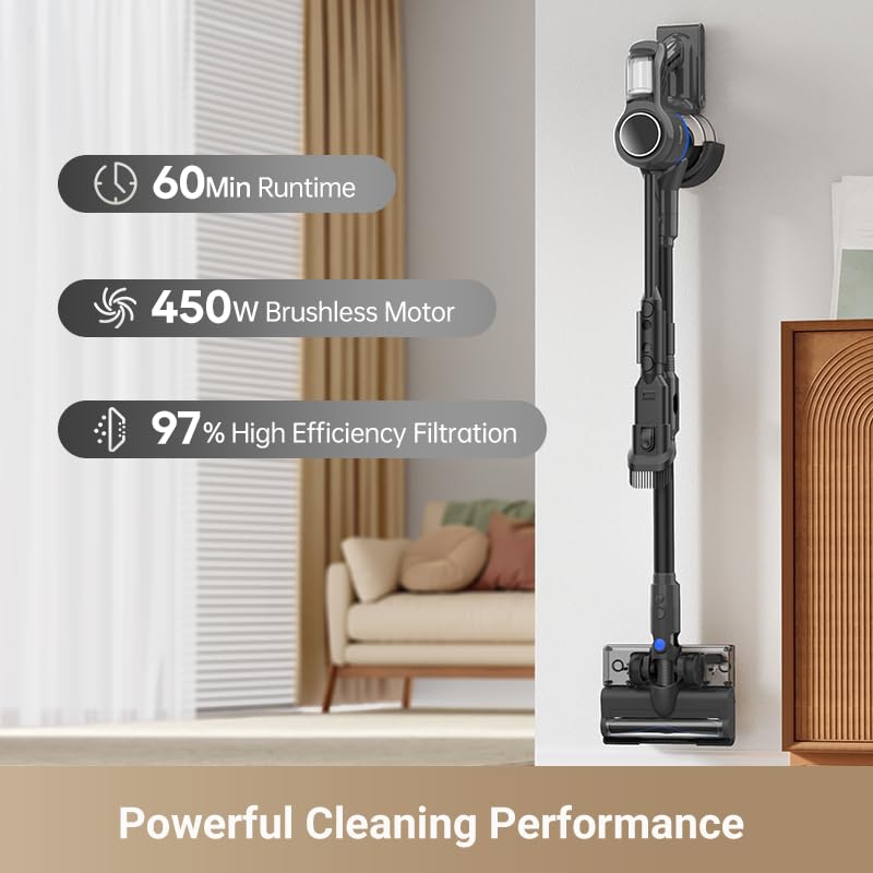 J30 ვერტიკალური მტვერსასრუტიდან სულ რამდენიმე წამში შეგიძლიათ აქციოთ ხელის მტვერსასრუტად, რომელიც დაგეხმარებათ გაწმინდოთ რბილი ავეჯი, ძნელად მისადგომი კუთხეები და მაღალი თაროები. Dreame J30 4.5 საათიანი დამუხტვით 60 წუთამდე მუშაობს. LED სენსორულ ეკრანიდან შესაძლებელია რეჟიმების არჩევა და ასევე დამუხტვის დონის კონტროლი.