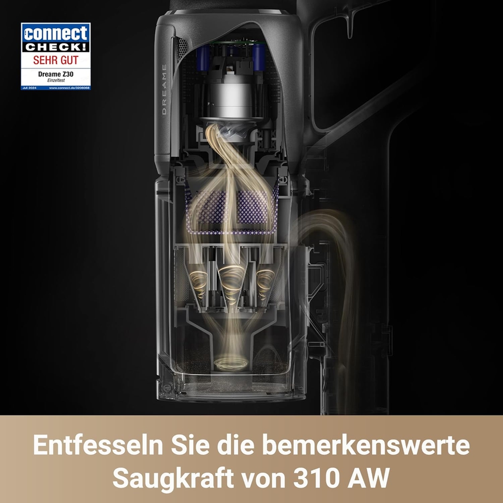 მოწყობილობას აქვს ჩამონტაჟებული ინფრაწითელი სენსორები, რომელიც ზუსტად ამოიცნობს ნაწილაკების ზომას და რაოდენობას. ჩაშენებული ჩიპი რეაგირებს შესაბამისად და ავტომატურად არეგულირებს შესრუტვის სიმძლავრეს. Dreame Z30 ვერტიკალური მტვერსასრუტი შეგიძლიათ აქციოთ ხელის მტვერსასრუტად, ასევე აქვს კეცვადი კორპუსი, რაც დაგეხმარებათ გაწმინდოთ, რთულად მისადგომი ადგილები, რბილი ავეჯი, ძნელად მისადგომი კუთხეები და მაღალი თაროები. 3200 mAh lithium-ion ბატარეის მეშვეობით, მტვერსასრუტი მუშაობს 90 წუთამდე, სრულად დასამუხტად კი საჭიროა 4 საათი.