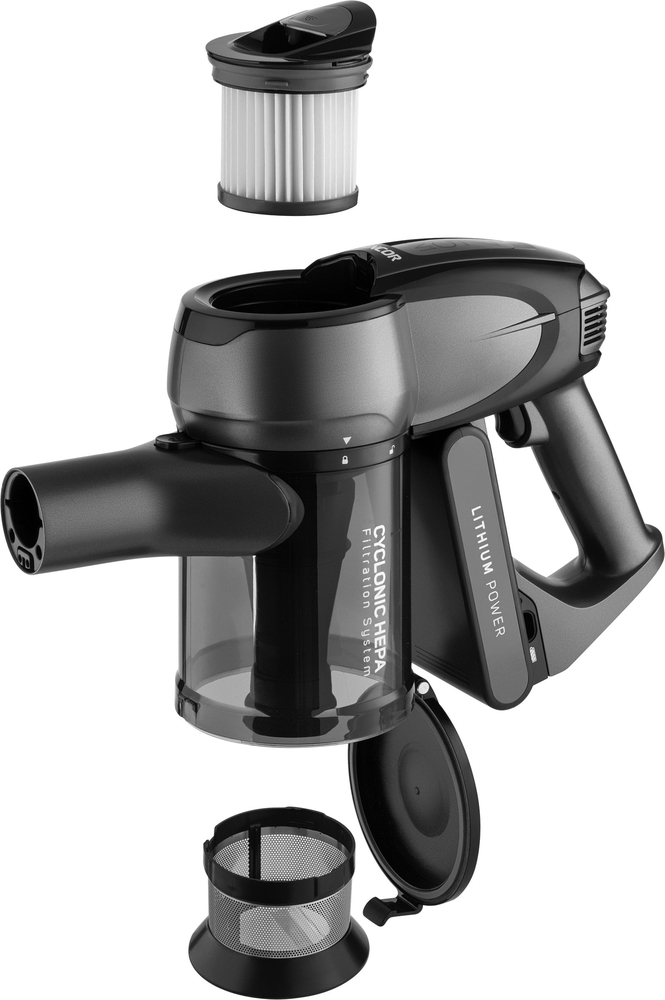 4-1-ში დიზაინის მქონე ხელის მტვერსასრუტი, მუშაობს როგორც მშრალი ისე სველი ტექნოლოგიით, ასევე ტრანსფორმირდება პორტატულ მტვერსასრუტად, რომლის გამოყენება საკმაოდ მარტივი და კომფორტულია. მტვერსასრუტს აქვს HEPA ფილტრაციის სისტემა და LED ილუმინაცია, რომლის მეშვეობითაც ისრუტავს მტვრის მცირე ნაწილაკებსაც კი. 360° ტექნოლოგია საშუალებას გაძლევთ მარტივად მიაღწიოთ რთულად მისადომ ადილებშიც. შესაძლებელია აირჩიოთ სიჩქარის სამი ვარიანტიდან ერთ-ერთი - Turbo, High Speed ან Extended Vacuuming Time.