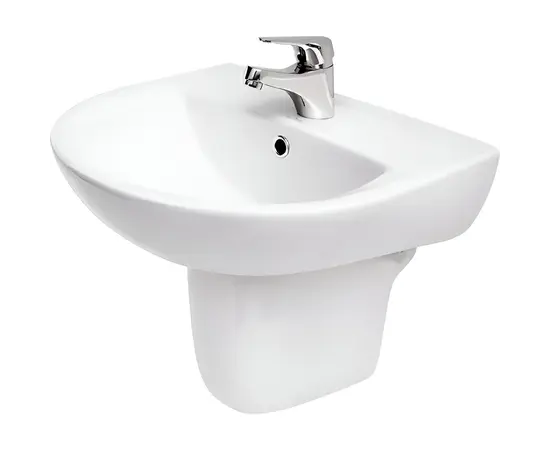 Cersanit PRESIDENT 55 ხელსაბანი აერთიანებს ფუნქციონალურობას და კლასიკურ დიზაინს. თეთრი კერამიკისგან დამზადებული, ის სთავაზობს ნებისმიერ სააბაზანოსთან შესაფერის დროისგან შეუცვლელ იერსახეს. მისი ზომებია 550 მმ სიგანე და 455 მმ სიღრმე, რაც უზრუნველყოფს ფართო და კომფორტულ სივრცეს ყოველდღიური გამოყენებისთვის.