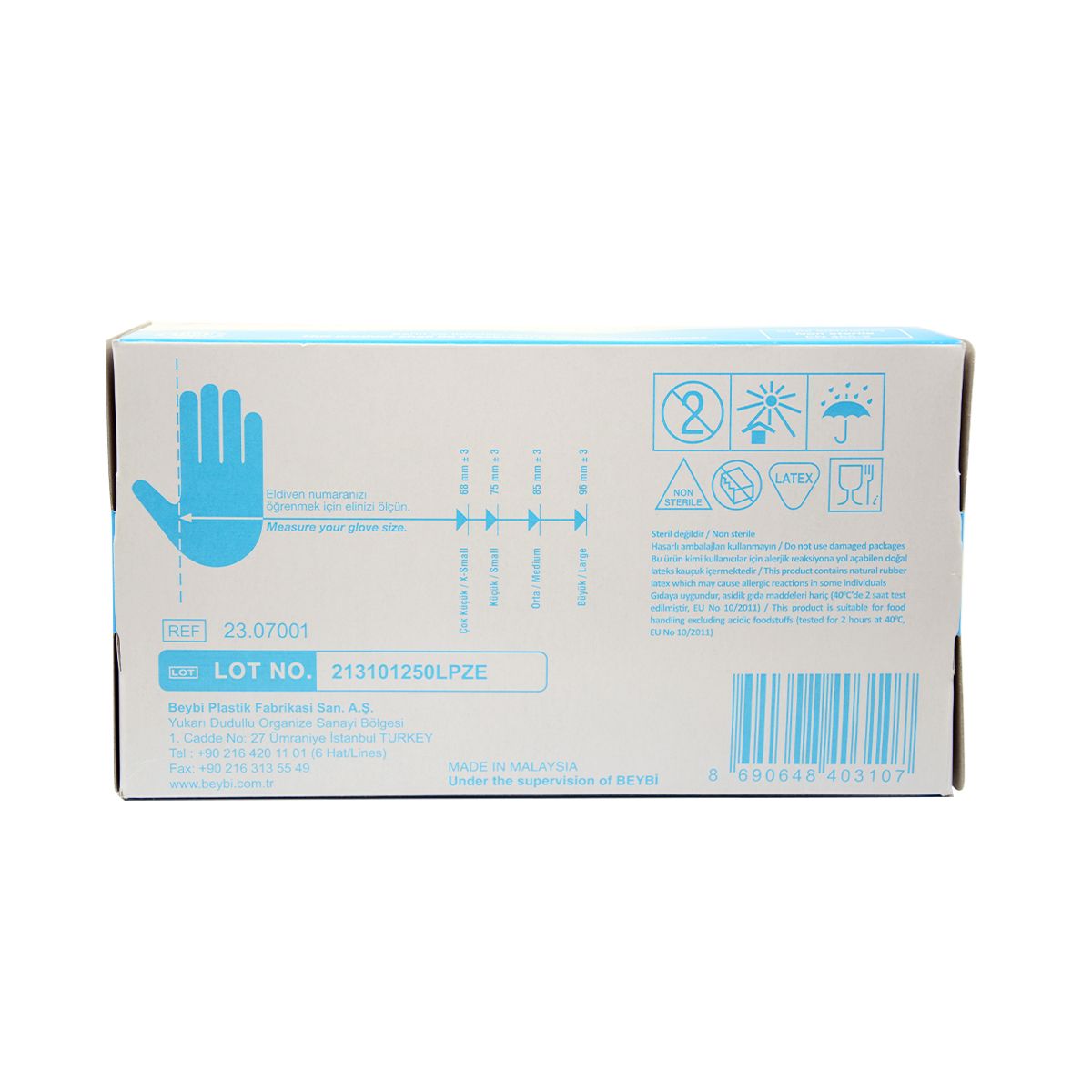 ხელთათმანი წყვილი LATEX არასტერილური M ზომა პუდრით 50 ცალი