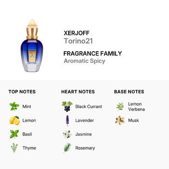 At the first spray, Torino21 opens with a crisp blend of mint, lemon, basil, and thyme—creating a bright and energizing introduction. As the fragrance settles, heart notes of black currant, lavender, jasmine, and rosemary add a calming yet vibrant touch. Finally, the base notes of lemon verbena and soft musk leave a clean and lasting impression that keeps you feeling fresh all day long.