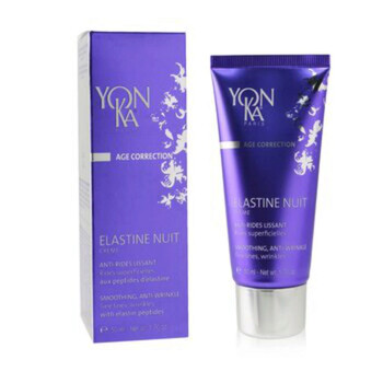 An anti-wrinkle night cream with 80% natural ingredients. Features a lightweight texture & delicate fragrance. Enriched with elastin peptides & milk peptides to soften the appearance of fine lines & wrinkles. Formulated with shea butter for repairing & protecting benefits. Blended with soy peptides for re-structuring action. Infused with Vitamin C & wheatgerm oil for anti-oxidant & regenerating power. Skin becomes smoother, plumper, more elastic & nourished. Perfect for all types of mature skin. Design house: Yonka. Series: Age Correction Elastine Nuit Creme With Elastin Peptides. Gender: Ladies. Category: Skin Care. SubType: Moisturizers. Size: 1.7 oz. Barcode: 832630005342. Smoothing, Anti-Wrinkle. Yonka Ladies Age Correction Elastine Nuit Creme With Elastin Peptides 1.7 oz Skin Care 832630005342.