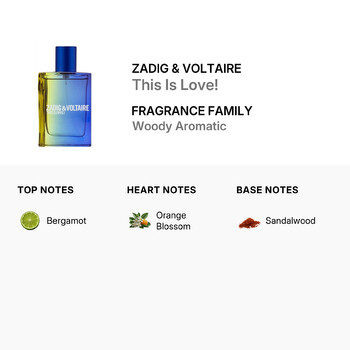 Experience the bold allure of Zadig & Voltaire's This Is Love! Men's EDT. This captivating fragrance, launched in 2020, carries the fresh and masculine scent that's distinctly Zadig & Voltaire. It is the perfect addition to every modern man's fragrance collection.