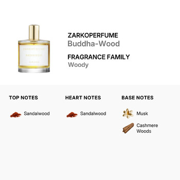 Part of the woody fragrance family, Buddha-Wood opens with the smooth and creamy essence of sandalwood. This top note gently leads into a heart that continues the sandalwood theme, creating a warm and grounding effect that lingers throughout the day. At the base, soft musk and luxurious cashmere woods add a velvety finish, wrapping the skin in comfort and calm sophistication.