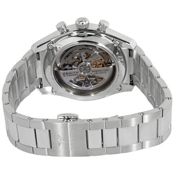 Stainless steel case with a stainless steel bracelet. Fixed stainless steel bezel. Grey (cut-away) dial with silver-tone hands and index hour markers. Minute markers. Tachymeter markings around the outer rim. Dial Type: Analog. Luminescent hands and markers. Chronograph - two sub-dials displaying: 12 hour and 30 minute. Zenith calibre El Primero 4061 automatic movement, based upon Zenith El Primero 400, containing 31 Jewels, composed of 282 parts, bitting at 36000 vph, and has a power reserve of approximately 50 hours. Scratch resistant sapphire crystal. Pull / push crown. Transparent case back. Round case shape. Case size: 42 mm. Case thickness: 14.05 mm. Band width: 20 mm. Fold over clasp with a push button release. Water resistant at 100 meters / 330 feet. Functions: chronograph, tachymeter, column wheel, hour, minute, small second. Chronomaster 1969 Series. Luxury watch style. Watch label: Swiss Made. Zenith Chronomaster 1969 Chronograph Automatic Men's Watch 03.2040.4061/23.M2040.