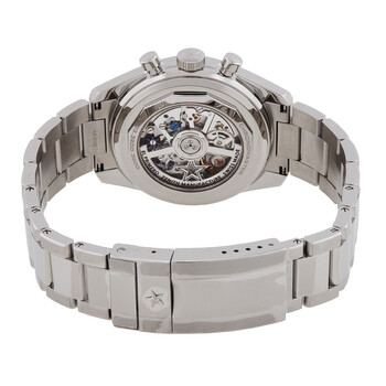 Silver-tone stainless steel case and bracelet. Fixed silver-tone stainless steel bezel. Black dial with silver-tone hands and index hour markers. Minute markers. 1/100th second markers. 1/10th of a second markers around the outer rim. Dial Type: Analog. Luminescent hands and markers. Date display between 4 and 5 o'clock position. Chronograph - three sub-dials displaying: 60 second, 60 minute and 1/10th of a second. Zenith Calibre 3600 automatic movement with a 60-hour power reserve. Scratch resistant sapphire crystal. Transparent case back. Round case shape, case size: 38 mm. Fold over clasp with a safety release. Water resistant at 50 meters / 165 feet. Functions: chronograph, date, hour, minute, second. Chronomaster El Primero Series. Luxury watch style. Watch label: Swiss Made. Zenith Chronomaster El Primero Chronograph Automatic Black Dial Men's Watch 03.3200.3600/22.M3200.