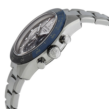 Silver-tone stainless steel case and bracelet. Tricolor ceramic bezel. Silver sunray dial with silver-tone hands and index hour markers. 1/10th of a second chronograph. Dial Type: Analog. Date display between 4 and 5 o'clock position. Chronograph - three sub-dials displaying: 60 second, 60 minute and 1/10th of a second. Zenith Calibre El Primero 3600 Automatic movement, containing 35 Jewels, composed of 311 parts, bitting at 36000 vph, and has a power reserve of approximately 60 hours. Scratch resistant sapphire crystal. Pull / push crown. Transparent see through case back. Round case shape, case size: 41 mm. Push button deployant buckle clasp. Water resistant at 100 meters / 330 feet. Functions: chronograph, date, hour, minute, second. Chronomaster Series. Luxury watch style. Watch label: Swiss Made. Zenith Chronomaster Sport Boutique Edition Chronograph Automatic Men's Watch 03.3103.3600/69.M3100.