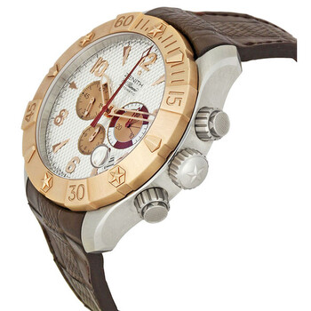 18kt yellow gold case with a brown leather strap. Uni-directional rotating 18kt yellow gold bezel. White textured dial with gold-tone skeletal hands and alternating Arabic nmeral and index hour markers. Minute markers around the outer rim. Dial Type: Analog. Date display between 4 and 5 o'clock positionbrown leather. Chronograph - three sub-dials displaying: 60 seconds, 30 minutes and 1/10th seconds sub dials. Zenith Calibre El Primero 4000 SC Automatic movement, containing 31 Jewels, bitting at 36000 vph, and has a power reserve of approximately 55 hours. Scratch resistant anti-reflective sapphire crystal. Screw down crown. Screw down case back. Round case shape. Case size: 46.5 mm. Tang clasp. Water resistant at 300 meters / 1000 feet. Functions: chronograph, date, hour, minute, second. Luxury watch style. Watch label: Swiss Made. Item Variations: 86.0526.4000.01.C649, 86.0526.4000-01.C649, 8605264000 01C649, 860526400001C649. Zenith Defy Classic Chronograph Aero Watch 86.0526.4000/01-C649.