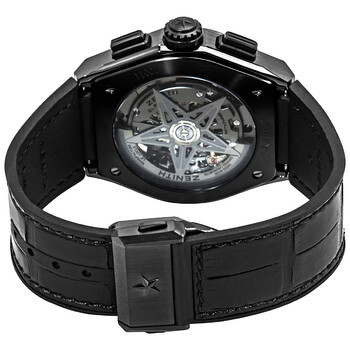 Black ceramic case with a rubber with a black (alligator) leather top strap. Fixed black ceramic bezel. Skeleton dial with luminous grey hands and index hour markers. Minute markers. 1/100th second markers around the outer rim. Dial Type: Analog. Luminescent hands and markers. Two sub-dials displaying: 60 second and 30 minute. Power reserve indicator. El Primero caliber 9004 automatic movement with a 50-hour power reserve. Scratch resistant sapphire crystal. Pull / push crown. Round case shape. Case size: 44 mm. Case thickness: 14.5 mm. Band width: 22 mm. Fold over clasp with a push button release. Water resistant at 100 meters / 330 feet. Functions: chronograph, hour, minute, second. Defy El Primero 21 Series. Luxury watch style. Watch label: Swiss Made. Zenith Defy El Primero 21 Chronograph Automatic Men's Watch 49.9000.9004/78.R582.
