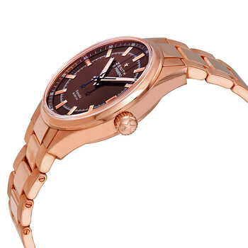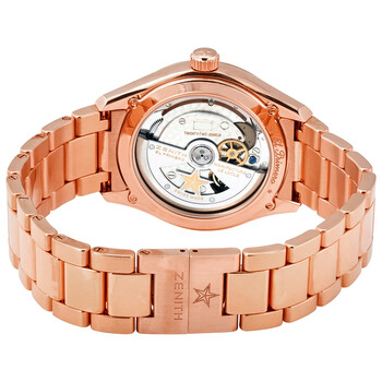 18kt rose gold case with a 18kt rose gold brushed bracelet. Fixed bezel. Brown dial with luminous rose gold hands and index hour markers. Minute markers around the outer rim. Dial Type: Analog. Luminescent hands and markers. Date display at the 3 o'clock position. Automatic movement with a 50-hour power reserve. Scratch resistant Sapphire crystal. Screw down crown. Case diameter: 40 mm. Case thickness: 11.7 mm. Round case shape. Deployment clasp with a push button release. Water resistant at 100 meters / 330 feet. Functions: date, hour, minute, second. Luxury watch style. Watch label: Swiss Made. Zenith El Primero Espada Brown Dial 18kt Rose Gold Brushed Men's Watch 18.2170.4650/75.M2170.