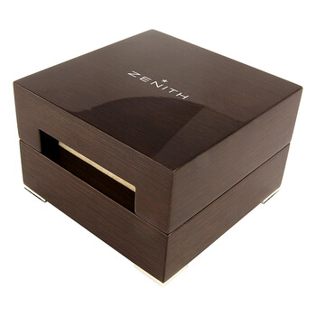 Stainless steel case with a black rubber strap. Black uni-directional rotating stainless steel bezel with a balck ceramic top ring. Silver dial with silver and red-tone hands and index hour markers. Minute markers around the outer rim. Dial Type: Analog. Luminescent hands and markers. Date display at the 6 o'clock position. Chronograph - three sub-dials displaying: 60 second, 60 minute and 1/10th of a second. Automatic movement with a 50 hour power reserve. Anti-reflective scratch resistant sapphire crystal. Solid case back. Case diameter: 45.5 mm. Case thickness: 14.1 mm. Round case shape. Deployment clasp. Water resistant at 100 meters / 330 feet. Functions: chronograph, date, hour, minute, second, flyback. Luxury watch style. Watch label: Swiss Made. Zenith El Primero Flyback Automatic Silver Dial Men's Watch 03.2062.4057/69.R515.