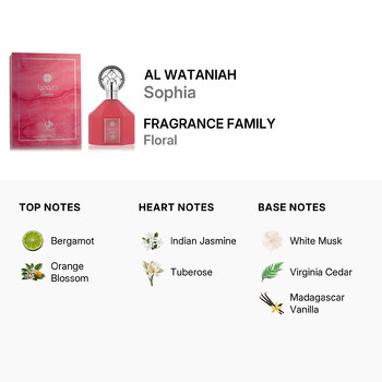 Designed by Al Wataniah, a renowned Middle Eastern fragrance house, Sophia reflects the brand’s commitment to quality, luxury, and tradition. This Eau de Parfum Spray is ideal for the modern woman who appreciates a blend of classic charm and contemporary sophistication.