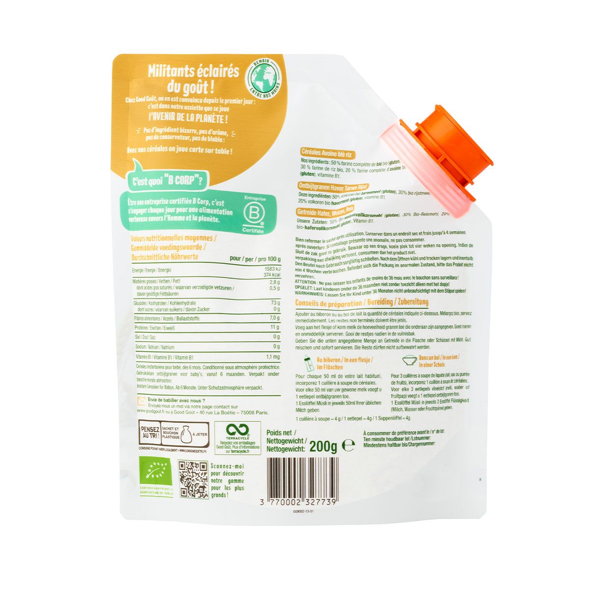 გუდ გოუტ -ორგანული ფაფა შვრია ხორბალი ბრინჯი 200 გრ.6 თვიდან 36 თვემდე.