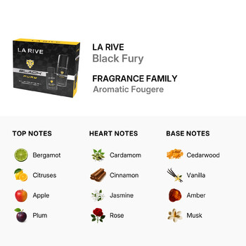 Unleash bold confidence with the La Rive Black Fury Gift Set for Men. Designed by the renowned fragrance house La Rive from Poland, this captivating scent offers a powerful blend of strength and style. Black Fury is crafted for the modern man who isn’t afraid to stand out. Whether you're heading to the office or stepping out for the night, this fragrance leaves a lasting impression with every spray.