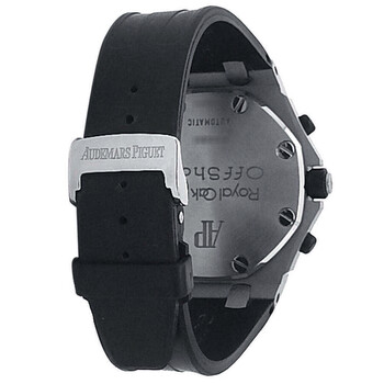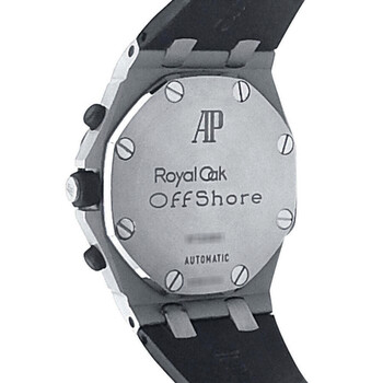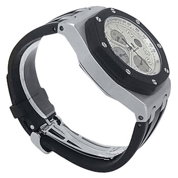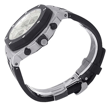 Pre-owned Stainless steel case with a black rubber strap. Fixed bezel. White dial with luminous hands and Arabic hour markers. Tachymeter scale around the outer rim. Luminescent hands and dial markers. Date display appears at the 3 o'clock position. White. Automatic movement. Scratch resistant sapphire crystal. Screw-down crown. Screw-down (8 screws) stainless steel with ap and royaloak offshore engraving case back. Case diameter: 44.0 mm. Case thickness: 14.4 mm. Deployment clasp. Water resistant at 100 meters / 330 feet. Functions: hours, minutes, seconds, calendar, chronograph, tachymeter. Audemars Piguet Royal Oak Offshore Men's Watch 25940SK.OO.D002CA.02.