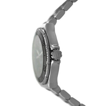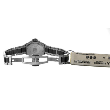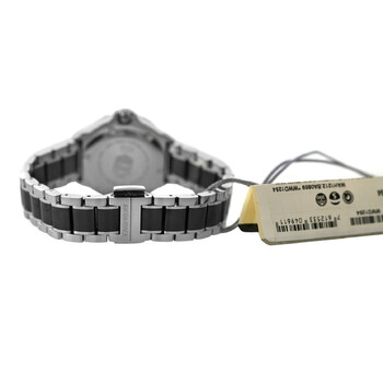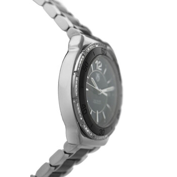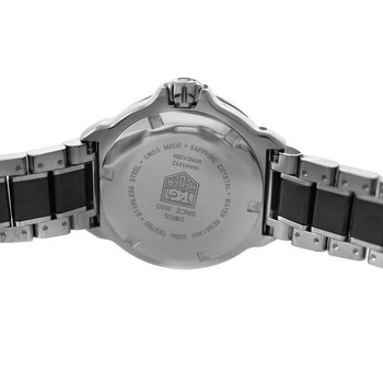 Silver-tone stainless steel case with a two-tone (black and silver-tone) stainless steel and ceramic bracelet. Black ceramic bezel. Black dial with silver-tone hands and Arabic numeral & index hour markers. Minute markers around the outer rim. Dial Type: Analog. Luminescent hands and markers. Date display at the 3 o'clock position. Quartz movement. Scratch resistant sapphire crystal. Screw down crown. Solid case back. Round case shape, case size: 34 mm. Band length: 7.75 inches. Fold over clasp with a safety release. Water resistant at 200 meters / 660 feet. Functions: date, hour, minute, second. Formula 1 Series. Luxury watch style. Watch label: Swiss Made. Item Variations: WAH1212. Pre-owned Tag Heuer Formula 1 Quartz Black Dial Men's Watch WAH1212.BA0859.