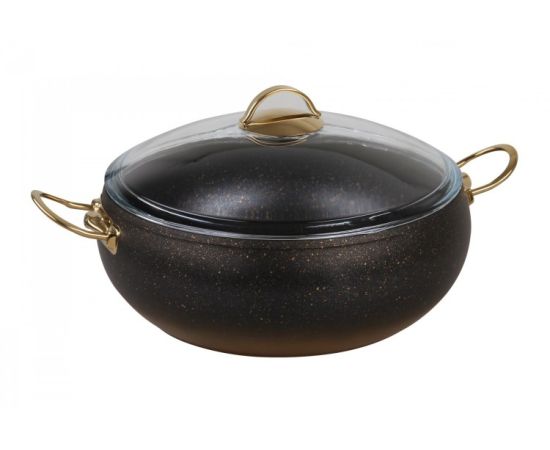 ქვაბი მიმწვრობის საწინააღმდეგო საფარით მინის თავსახურით OMS 3141-22-Gd' 22x10 სმ 3.5 ლ